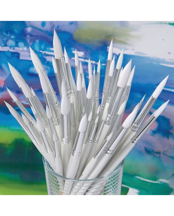 White Nylon Round Paint Brushes White Handle (Pack of 60) MJWNR