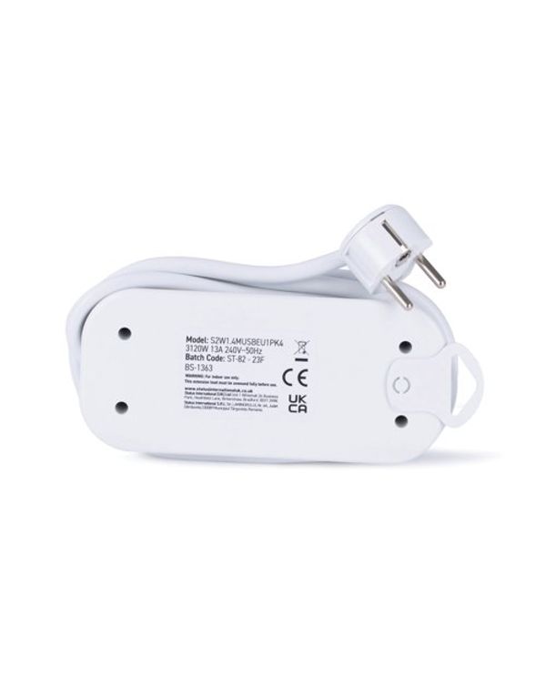 Status 2 Way Euro Travel Socket 1.4 Metre S2W1.4MUSBEU1