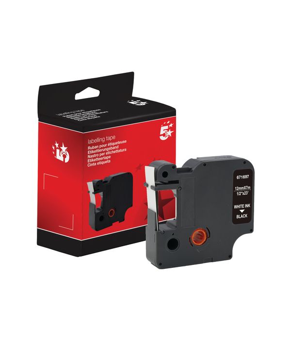 Five Star Non-OEM Replacement for Dymo 45021 White on Black 12mm x 7m FS671697