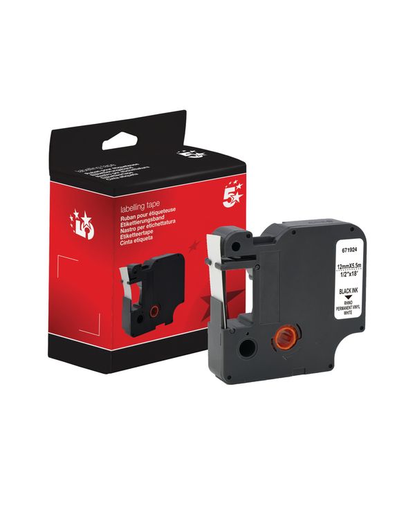 Five Star Non-OEM Replacement for Dymo 18444 Black on White 12mm x 5.5m FS671924