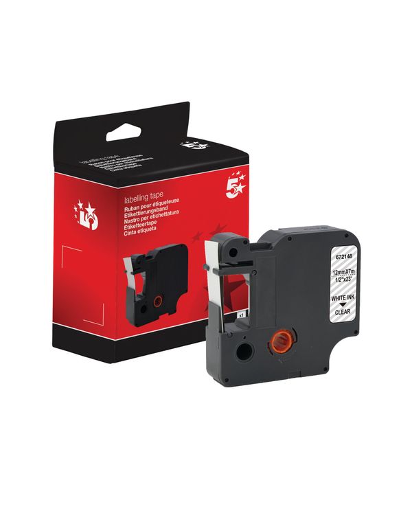 Five Star Non-OEM Replacement for Dymo 45020 White on Clear 12mm x 7m FS672148