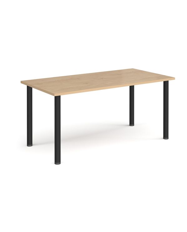 Rectangular black radial leg meeting table 1600mm x 800mm - Kendal oak