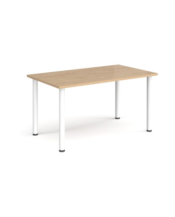Rectangular white radial leg meeting table 1400mm x 800mm - Kendal oak