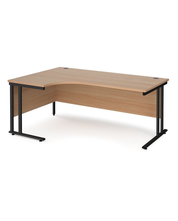 Maestro 25 left hand ergonomic desk 1800mm wide - black cantilever leg frame, beech top