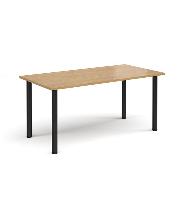 Rectangular black radial leg meeting table 1600mm x 800mm - oak