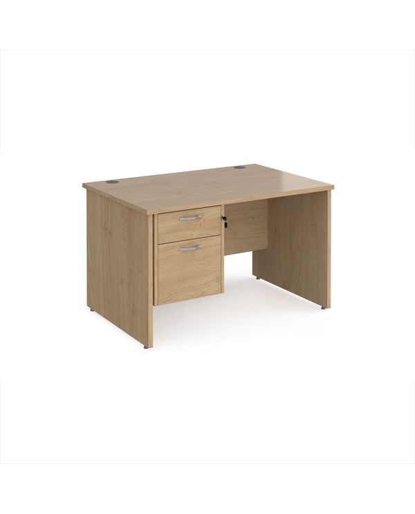 Maestro 25 straight desk 1200mm x 800mm with 2 drawer pedestal - kendal oak top with panel end leg