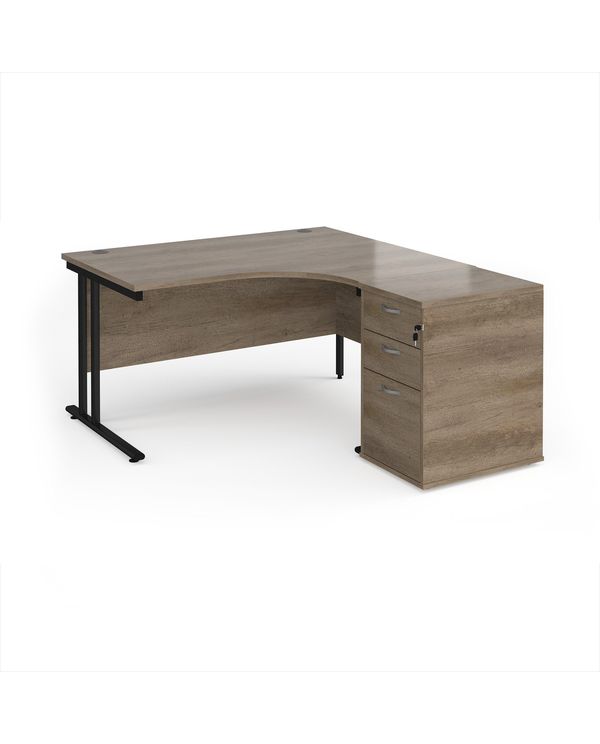 Maestro 25 right hand ergonomic desk 1400mm with black cantilever frame and desk high pedestal - Nebraska Oak
