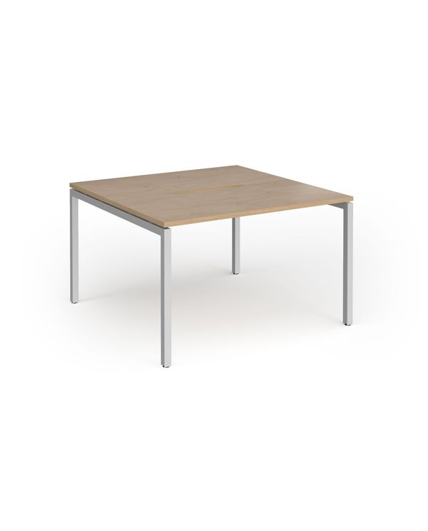 Connex Goal-Post 1200 x 1200 x 725mm Back to Back Desk (2 x 1200mm) - Silver Frame / Kendal Oak Top