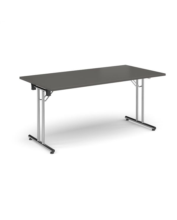 Rectangular folding leg table with chrome legs and straight foot rails 1600mm x 800mm - Onyx Grey