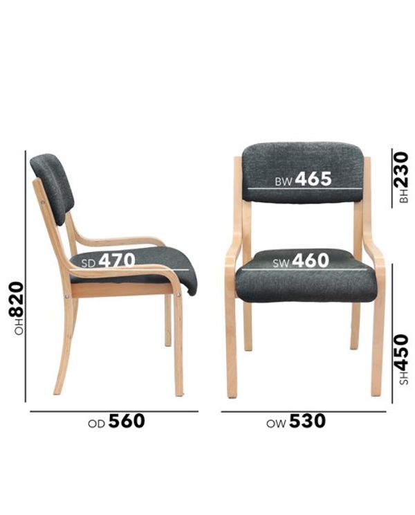 Prague wooden conference chair with no arms - charcoal