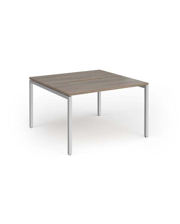 Connex Goal-Post 1200 x 1200 x 725mm Back to Back Desk (2 x 1200mm) - Silver Frame / Nebraska Oak Top