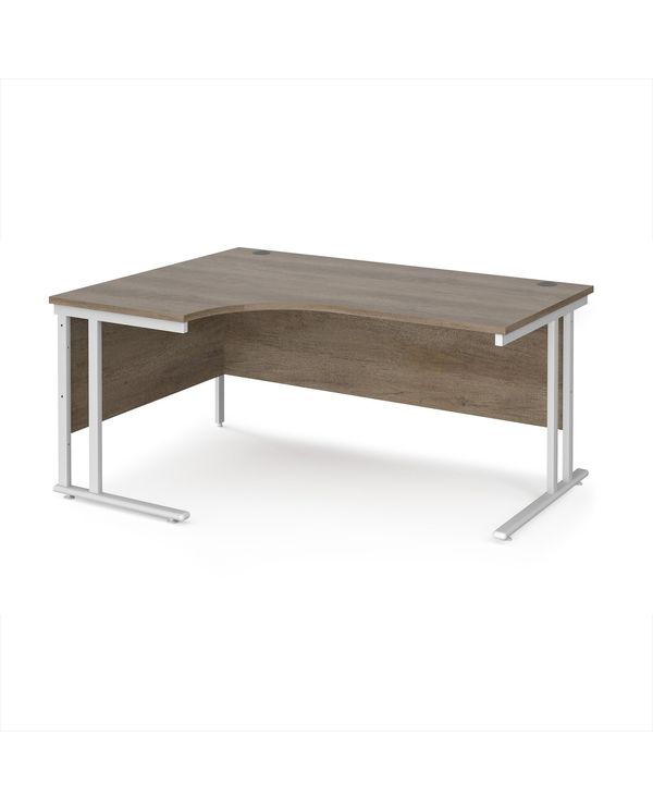 Maestro 25 left hand ergonomic desk 1600mm wide - white cantilever leg frame, Nebraska oak top