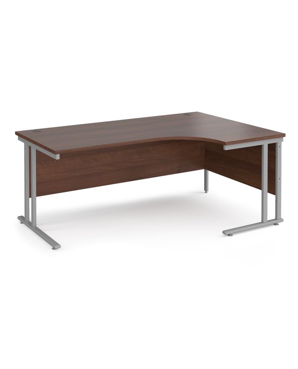 Maestro 25 right hand ergonomic desk 1800mm wide - silver cantilever leg frame, walnut top