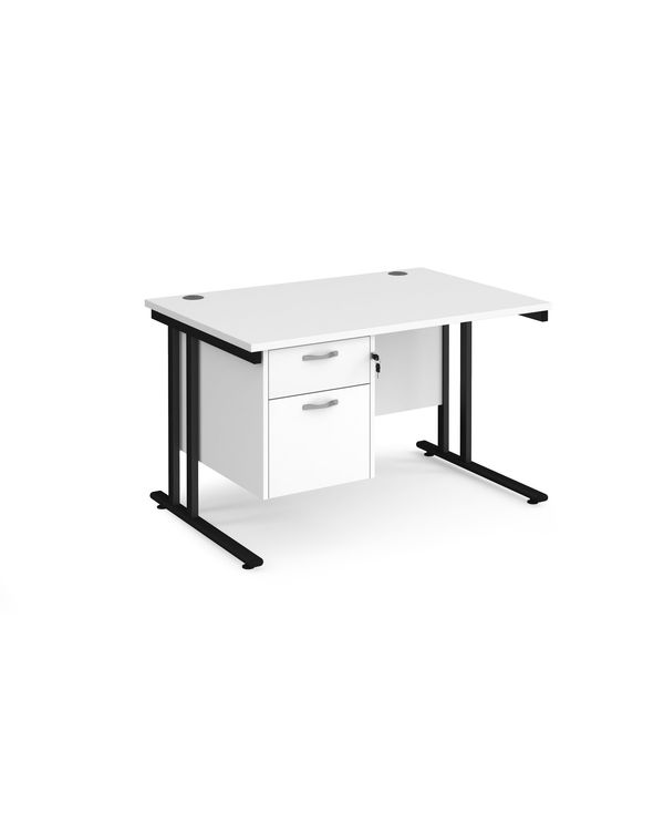 Maestro 25 straight desk 1200mm x 800mm with 2 drawer pedestal - black cantilever leg frame, white top