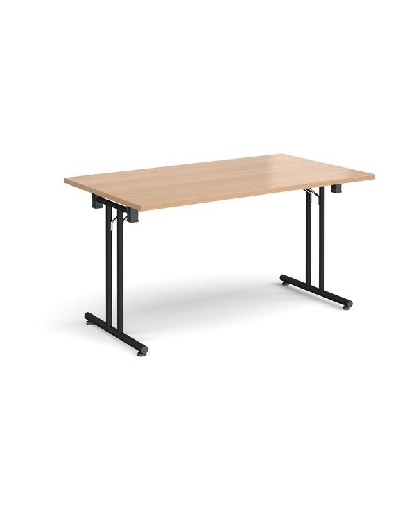 Rectangular folding leg table with black legs and straight foot rails 1400mm x 800mm - beech