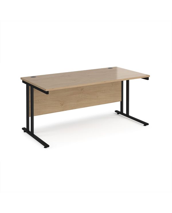 Maestro 25 straight desk 1600mm x 800mm - black cantilever leg frame, Kendal oak top