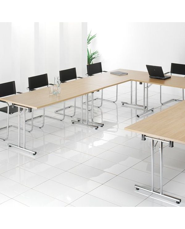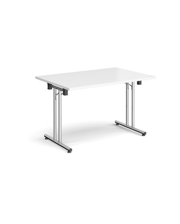 Rectangular folding leg table with chrome legs and straight foot rails 1200mm x 800mm - white