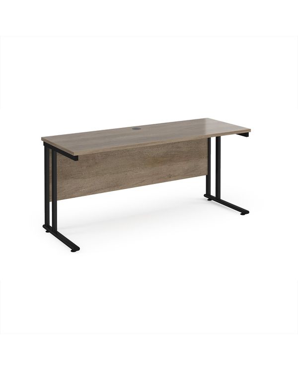 Maestro 25 straight desk 1600mm x 600mm - black cantilever leg frame, Nebraska oak top