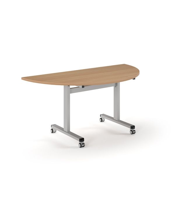 Pro Flip Semi-Circular Table 1600 x 800, Silver, Beech Top