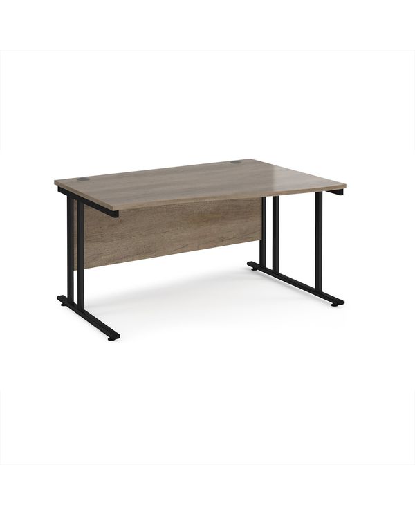 Maestro 25 right hand wave desk 1400mm wide - black cantilever leg frame, Nebraska oak top