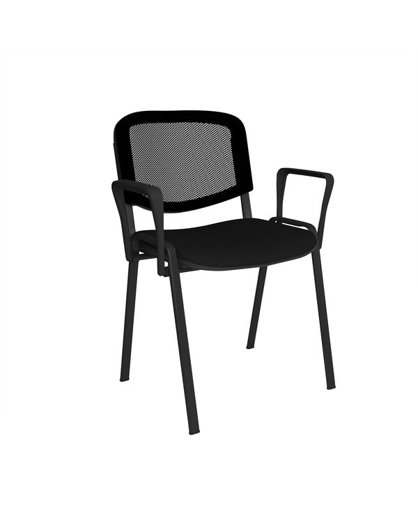 Taurus mesh back meeting room stackable chair with fixed arms - black