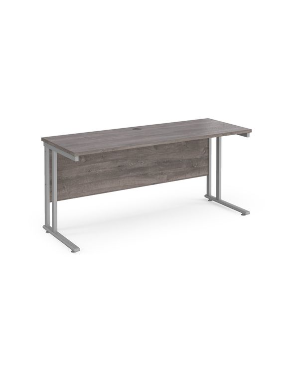 Maestro 25 straight desk 1600mm x 600mm - silver cantilever leg frame, grey oak top