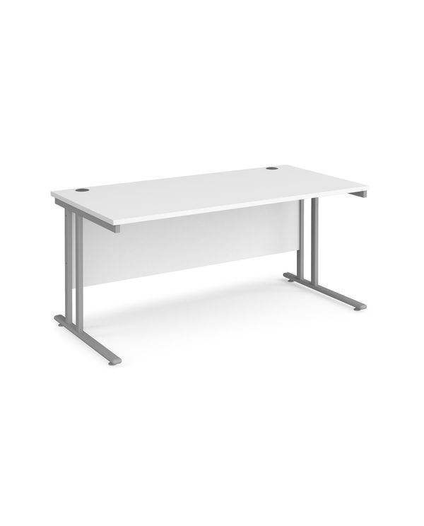 Maestro 25 straight desk 1600mm x 800mm - silver cantilever leg frame, white top