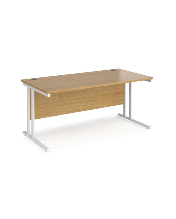 Maestro 25 straight desk 1600mm x 800mm - white cantilever leg frame, oak top