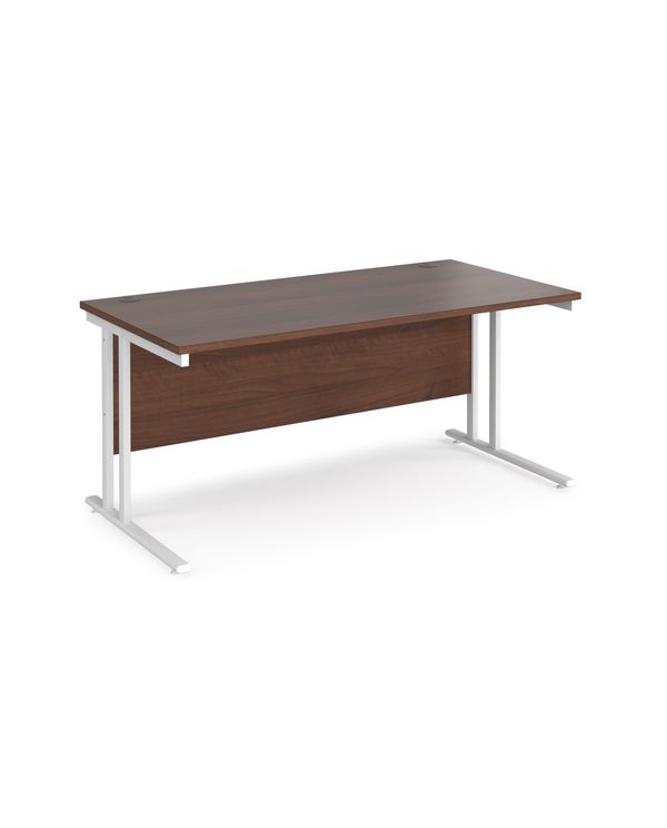Maestro 25 straight desk 1600mm x 800mm - white cantilever leg frame, walnut top