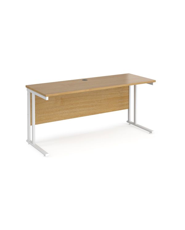 Maestro 25 straight desk 1600mm x 600mm - white cantilever leg frame, oak top
