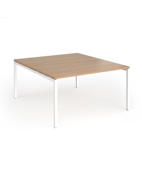 Connex Goal-Post 1400 x 1600 x 725mm Back to Back Desk (2 x 1400mm) - White Frame / Beech Top