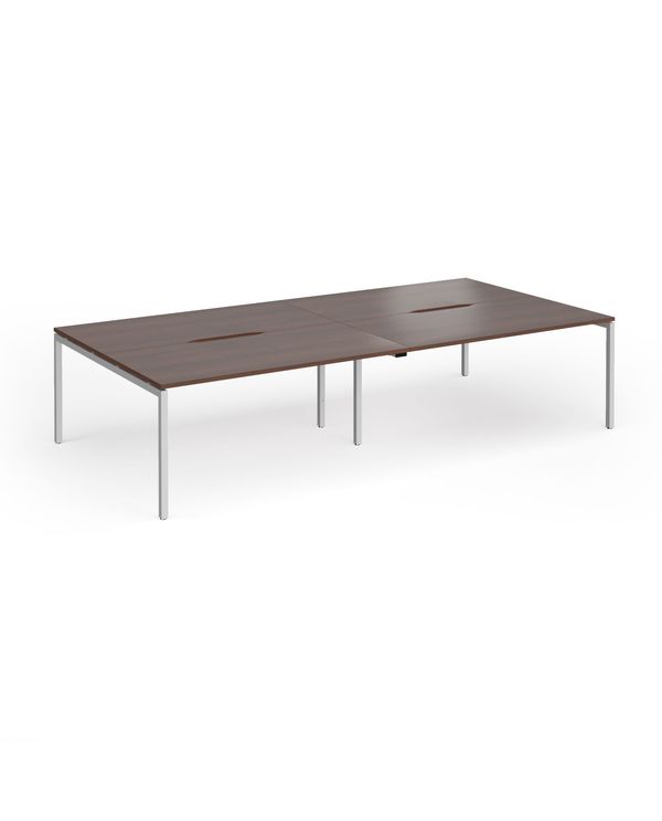 Connex Goal-Post 3200 x 1600 x 725mm Back to Back Desk (4 x 1600mm) - Silver Frame / Walnut Top