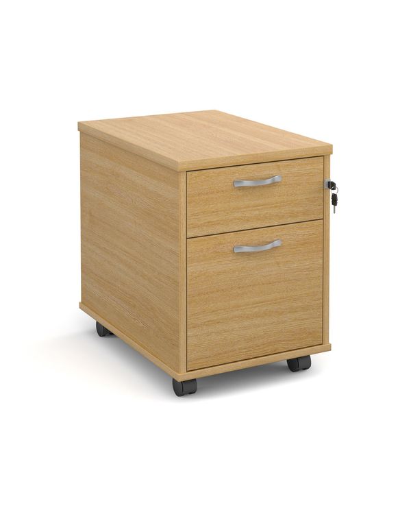 Mobile 2 drawer pedestal with silver handles 600mm deep - oak
