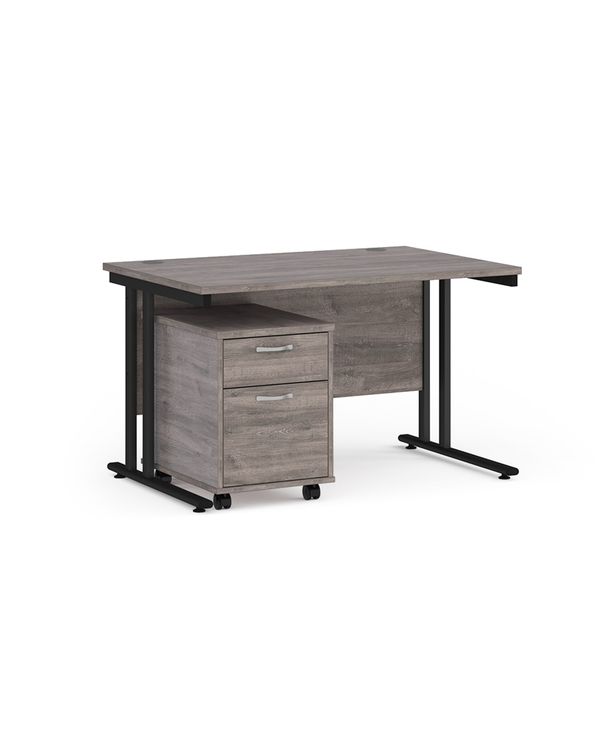 Maestro 25 straight desk 1200mm x 800mm with black cantilever frame and 2 drawer pedestal - grey oak