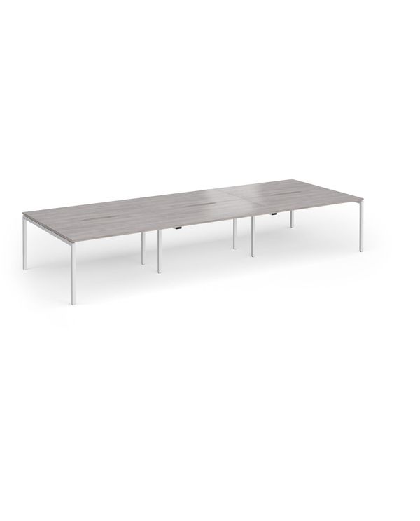 Connex Goal-Post 4200 x 1600 x 725mm Back to Back Desk (6 x 1400mm) - Silver Frame / Grey Oak Top
