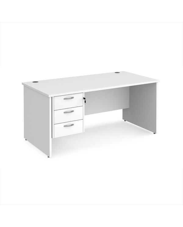 Maestro 25 straight desk 1600mm x 800mm with 3 drawer pedestal - white top with panel end leg