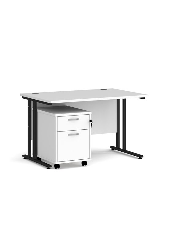 Maestro 25 straight desk 1200mm x 800mm with black cantilever frame and 2 drawer pedestal - white