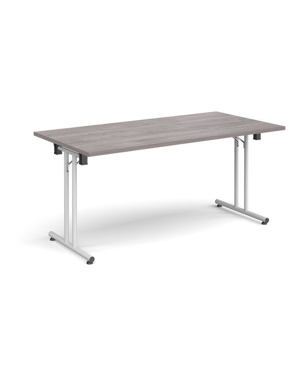 Rectangular folding leg table with white legs and straight foot rails 1600mm x 800mm - grey oak