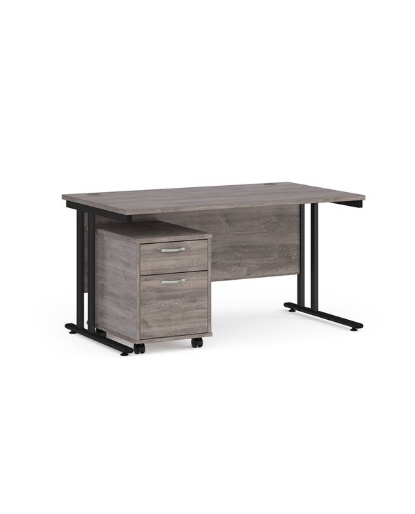 Maestro 25 straight desk 1400mm x 800mm with black cantilever frame and 2 drawer pedestal - grey oak