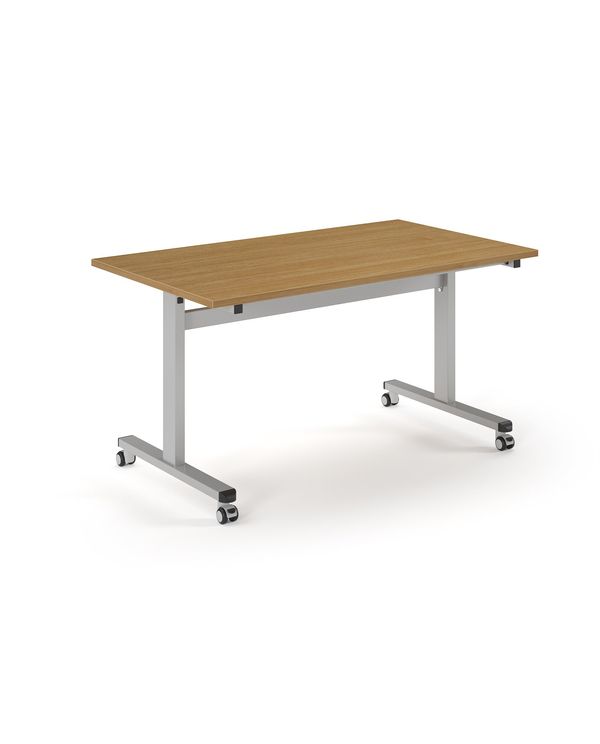 Pro Flip Rectangular Table 1400 x 800, Silver Frame, Oak Top