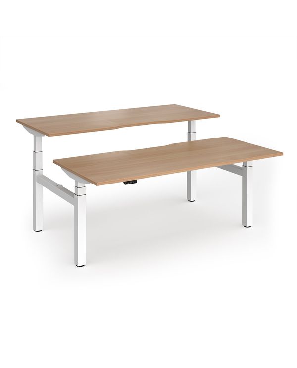 Elev8 Luxe Sit-Stand Back-To-Back Desks 1800mm x 800mm - White Frame / Beech Top