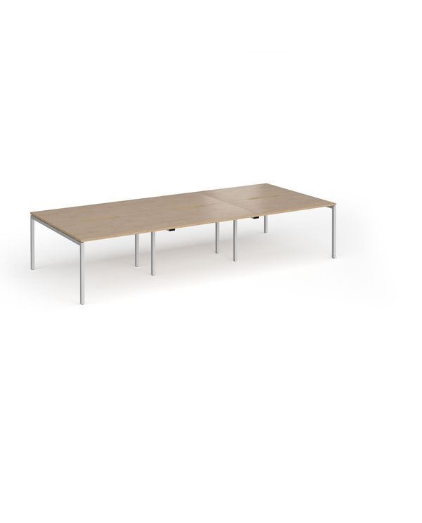 Connex Goal-Post 3600 x 1600 x 725mm Back to Back Desk (6 x 1200mm) - Silver Frame / Kendal Oak Top