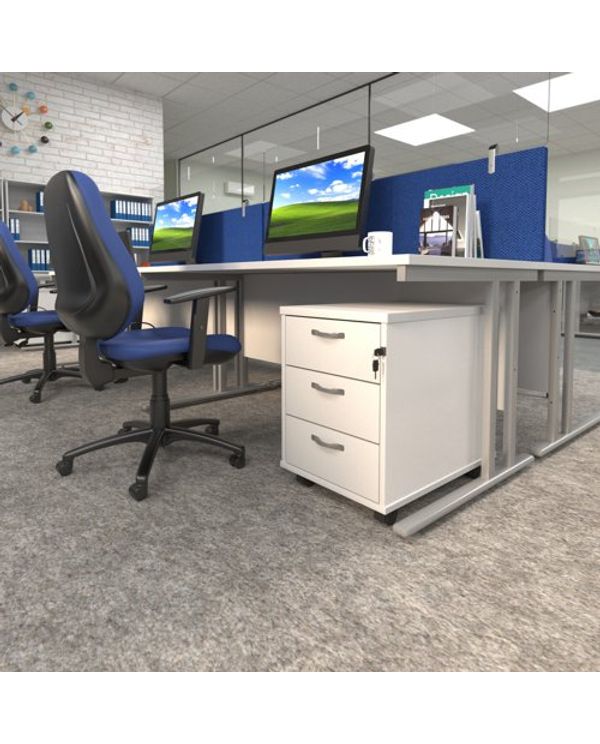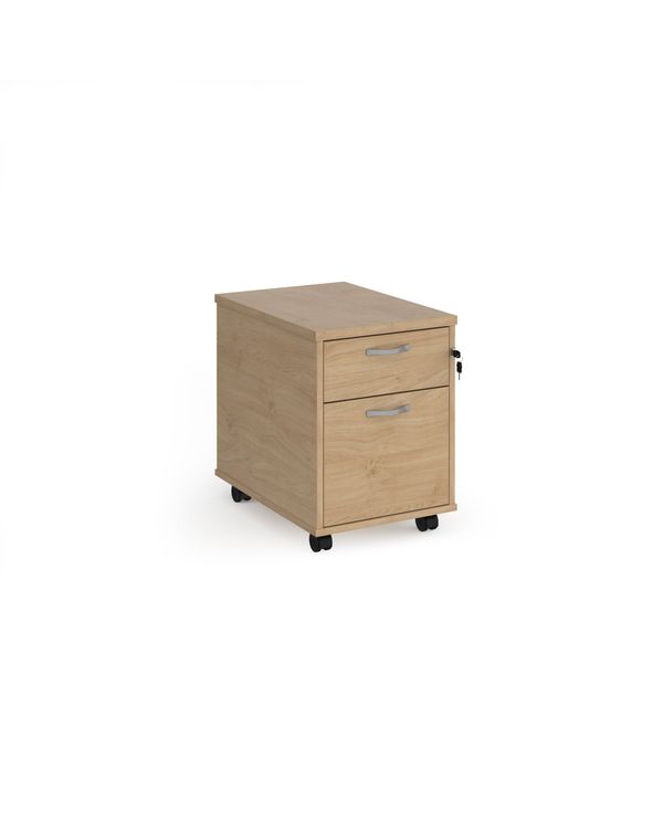 Mobile 2 drawer pedestal with silver handles 600mm deep - Kendal Oak