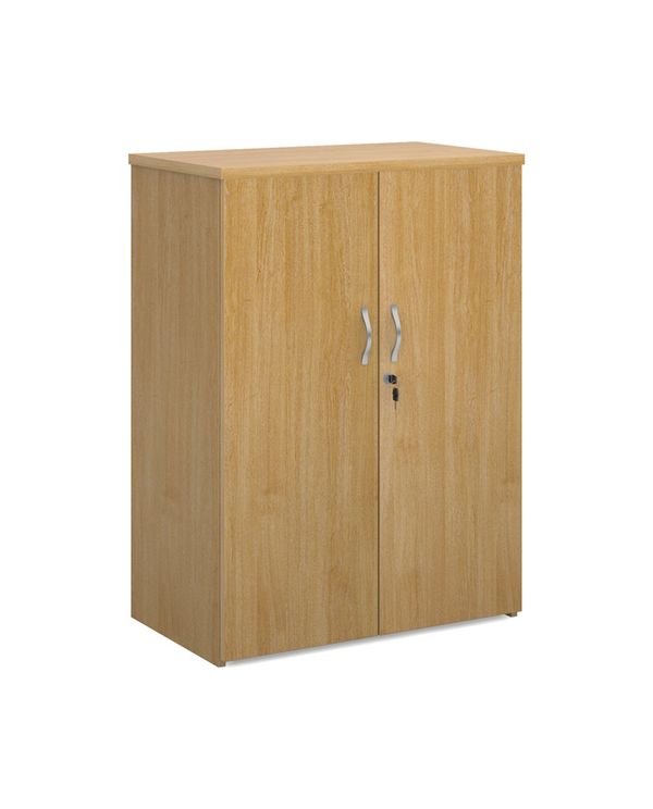 Universal double door cupboard 1090mm high with 2 shelves - oak