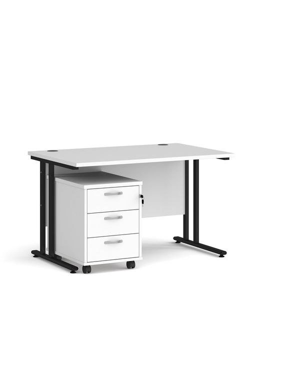 Maestro 25 straight desk 1200mm x 800mm with black cantilever frame and 3 drawer pedestal - white