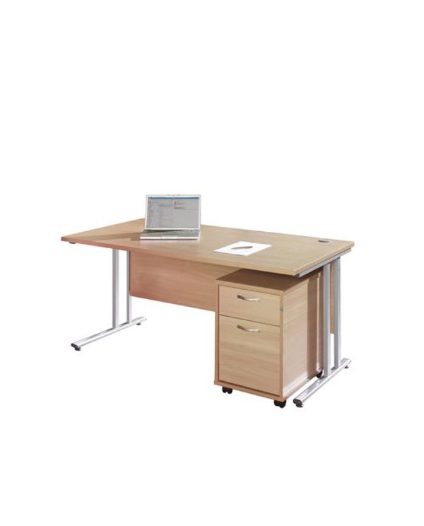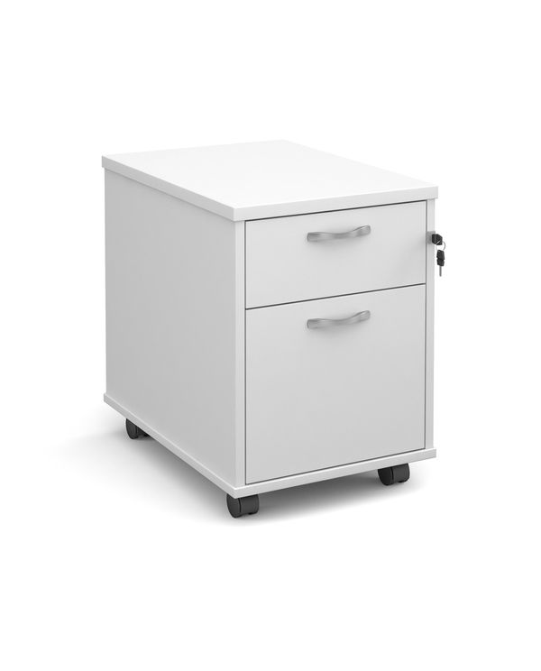 Mobile 2 drawer pedestal with silver handles 600mm deep - white