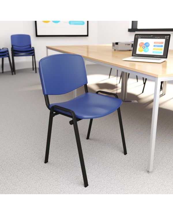 Taurus plastic meeting room stackable chair with fixed arms - blue with black frame