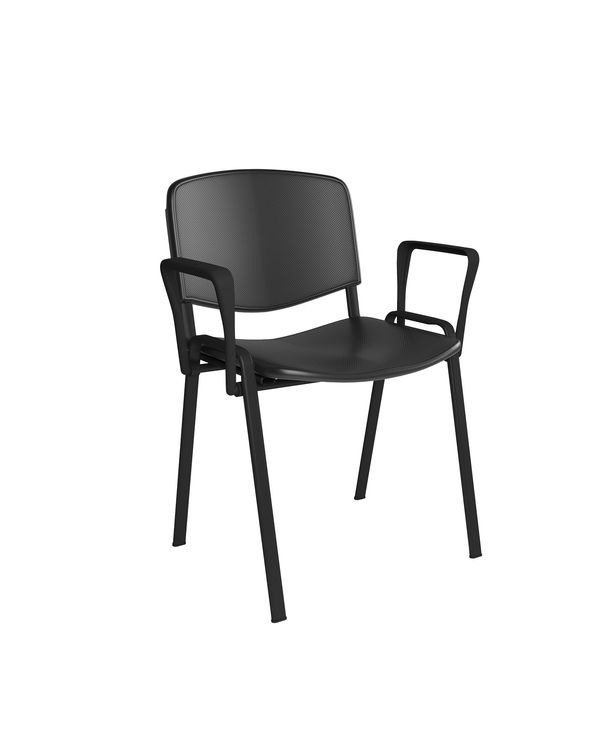 Taurus plastic meeting room stackable chair with fixed arms - black with black frame