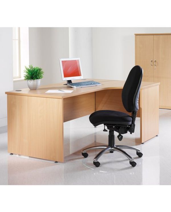 Maestro 25 left hand ergonomic desk 1600mm wide - grey oak top with panel end leg