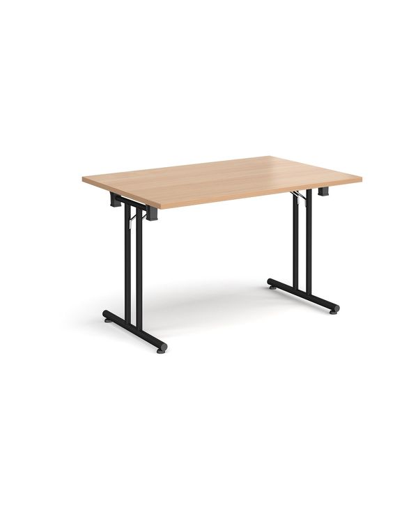 Rectangular folding leg table with black legs and straight foot rails 1200mm x 800mm - beech